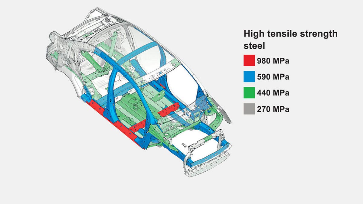 Khung xe RISE thép siêu cường Khung xe RISE cứng vững, đạt tiêu chuẩn 5 sao của ANCAP, đảm bảo an toàn cao cho khoang hành khách khi va chạm.